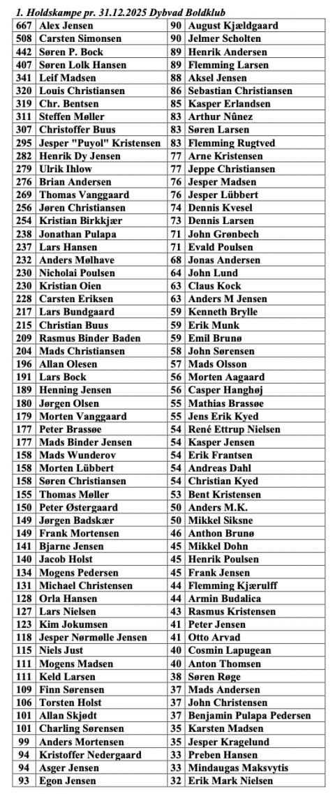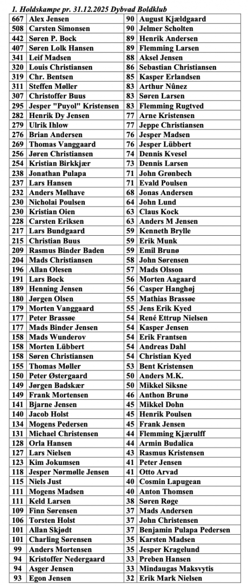 Førsteholdskampe i Dybvad Boldklub (pr. 31/12 2025)